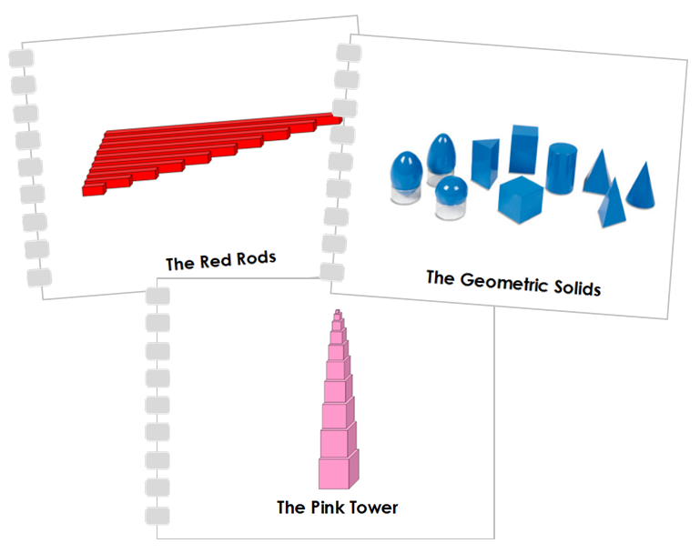 Add these short readers to your sensorial shelves, introducing them to the child after they have gained some experience with the materials. Each reader consists of six pages, with one short sentence and an illustration on each page.