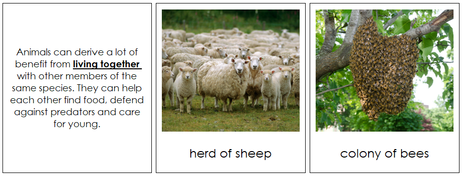 Set 2 includes only the name of the animal ("sheep" for the trait of living together).