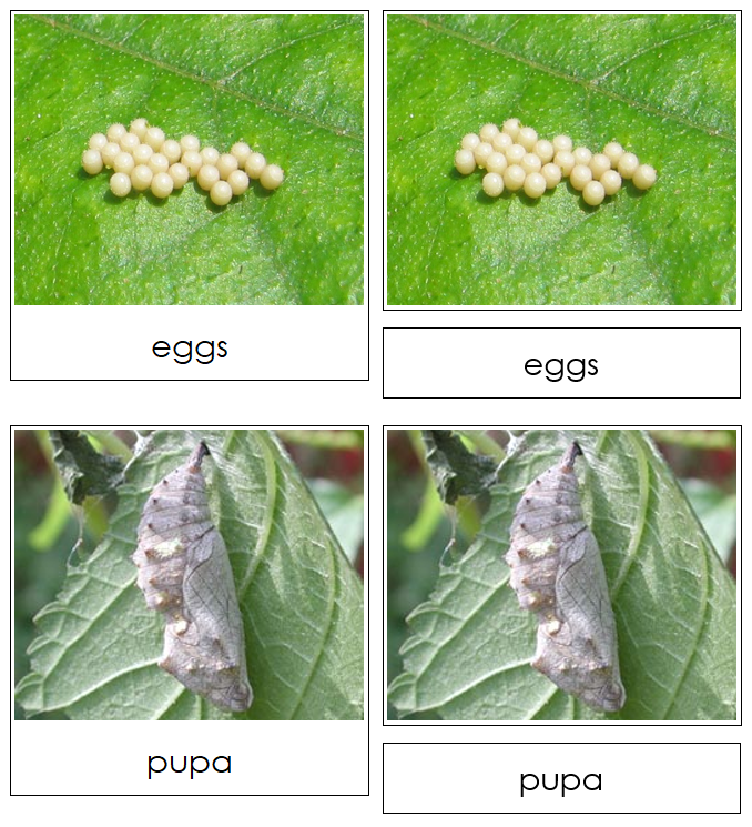 The Butterfly Life Cycle Cards are formatted in 3-part cards and include a blackline master. Includes photographic pictures: egg to butterfly, eggs, larva, pupa, and adult.