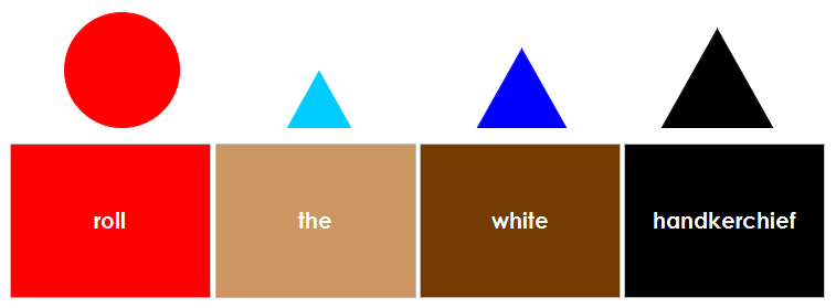 In elementary, the symbols used are the same color as those used in primary, but the color of the Grammar Box cards changes. This is standard in certified Montessori classrooms and followed by suppliers of traditional Montessori materials (such as Nienhuis). The thought is that Maria Montessori wanted the child to truly analyze the parts of speech and not simply match the colors as learned in the primary classroom. * The symbols are not included.