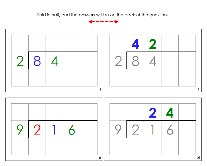Color-coded according to the Montessori math hierarchical colors. There is a 'd' (dynamic) or 's' (static) printed in the bottom corner of each card. Cards can be printed and folded so that the answers are on the back of the questions.
