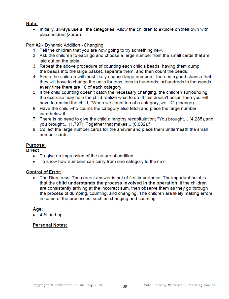 A complete and comprehensive teaching manual for the primary level math (ages 2½ to 6 years of age). Based on AMI principles and concepts.