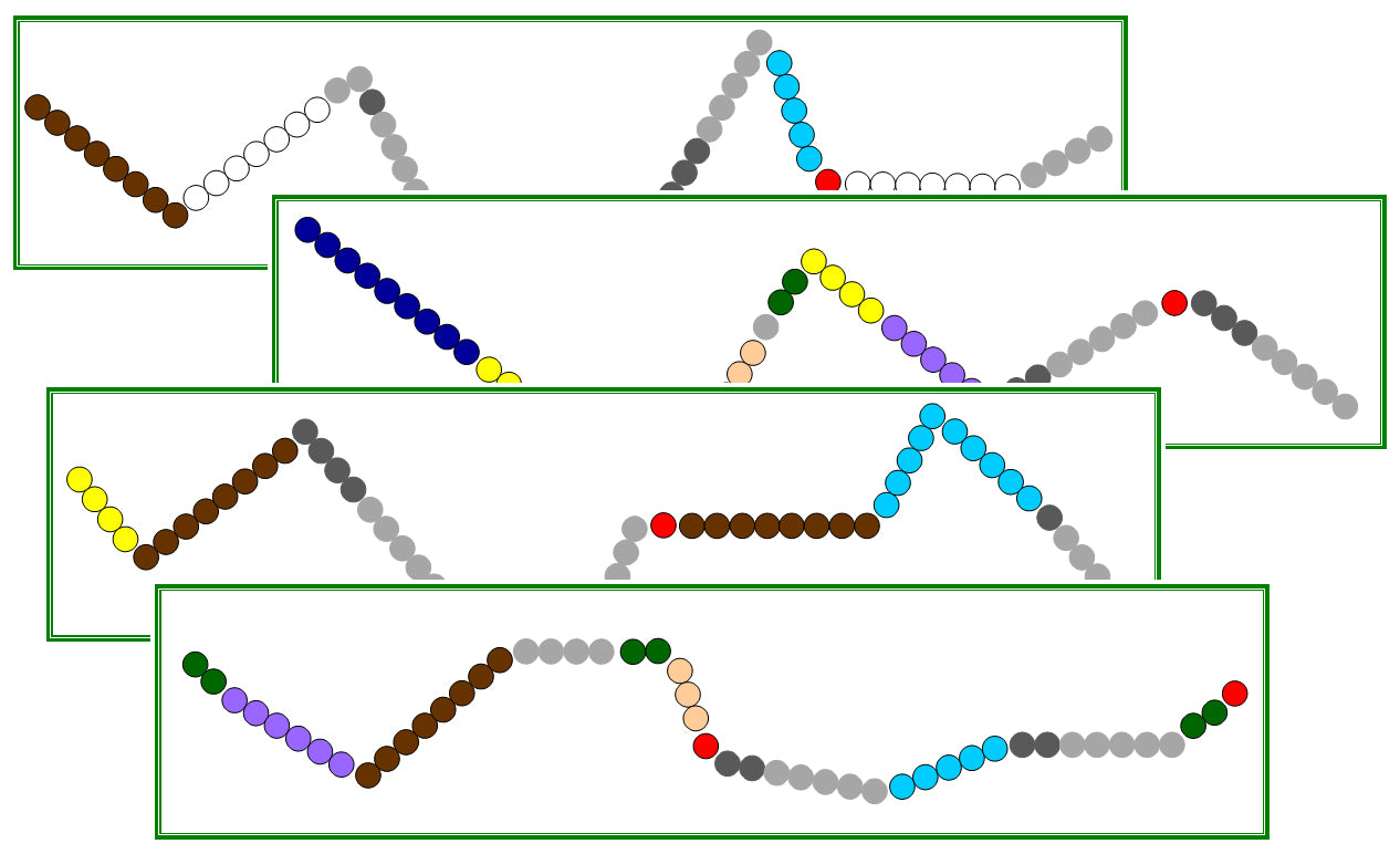 The children copy the snakes using the grey bars and color bead bars. Then complete the subtraction process using the black & white bars, golden ten bars and colored beads.