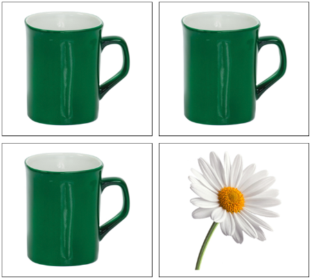 Each of the ten sets includes 3 object cards that are the same and 1 object card that is different.